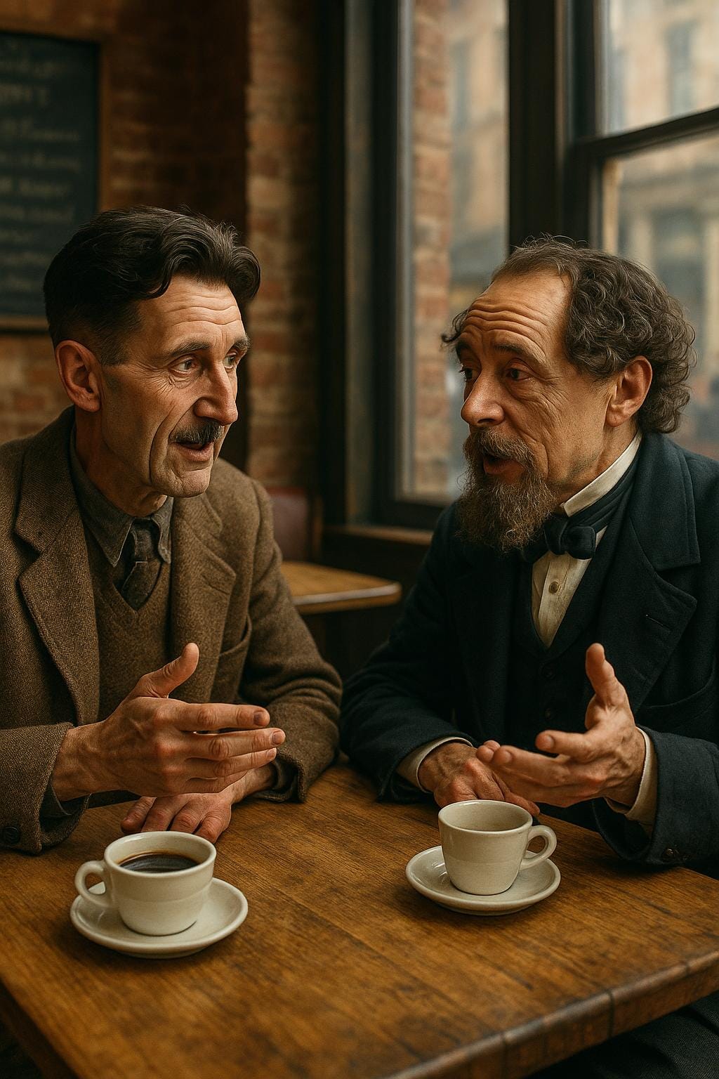 لو كان الأمر مقتصرًا على هذا فقط، لما كان أكثر من كاتب مبهج، مجرد خداع رجعي. إن "تغيير الرأي" هو في الحقيقة ذريعة أولئك الذين يرفضون تعريض الوضع الراهن للخطر. لكن ديكنز ليس بمخادع، إلا في الأمور التافهة؛ أقوى انطباع يتركه في نفوس القراء هو كراهيته للاستبداد. قد ذكرت سابقًا أن ديكنز ليس كاتبًا ثوريًا بالمعنى التقليدي. ومع ذلك، ليس من المؤكد على الإطلاق أن النقد الأخلاقي المجرد للمجتمع قد لا يكون "ثوريًا" بنفس القدر - فالثورة، في نهاية المطاف، تعني قلب الأمور رأسًا على عقب، كما هو الحال مع النقد السياسي والاقتصادي السائد في زمنه. لم يكن بليك سياسيًا، لكن هناك فهم أعمق لطبيعة المجتمع الرأسمالي في قصيدة مثل "أتجول في كل شارع مُخطط" مما يوجد في ثلاثة أرباع الأدب الاشتراكي. إن التقدم ليس مجرد خيال، بل هو واقع يجري على نحو مُتدرج، وغالبًا ما يكون مُحبِطًا. دائمًا ما يظهر طاغية جديد في الأفق ليخلف السابق، وعادةً ما يكون أقل سوءًا، ولكنه يظل طاغية في كل الأحوال. لذا، تتواجد دائمًا وجهتان نظر يُعتبر كل منهما مقبولًا. الأولى تتساءل: كيف يمكن تحسين طبيعة الإنسان قبل الانطلاق نحو تغيير النظام؟ والثانية تُثير السؤال: ما قيمة تغيير النظام إذا لم نُحسّن طبيعتنا البشرية؟