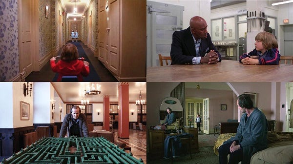 الفندق المنعزل عبارة عن شبكة من الممرات والغرف، جميعها ترقب وتعيد بثّ شعلة الرعب النفسي في أرجائها.