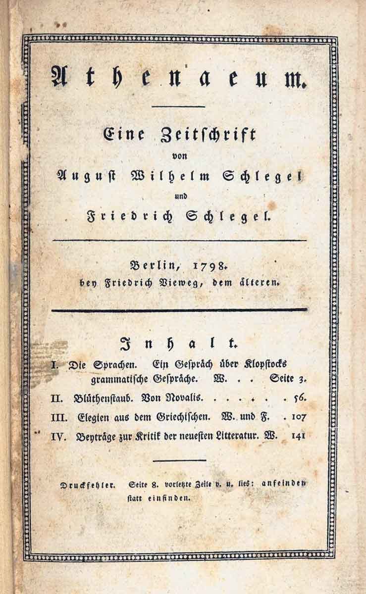 لنرجع قليلًا إلى العام ١٨٠٠، ذلك العام المحوري في مسار الحركة الرومانسية وفلسفة المثالية، وهو محوري لثلاثة أسباب أساسية: